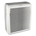 True HEPA Large Room Air Purifier, 430 sq ft Room Capacity, White. Feel better knowing that your family is breathing cleaner air. This Holmes Allergen Remover is up to 99.97% efficient in removing allergens such as pollen, dust, mold, pet dander and smoke from the air passing through the filter. The carbon odor filter, which has been treated with baking soda, is designed to trap larger particles as well as absorb and eliminate odors that may come from pets, garbage, bathrooms, litter boxes, smoke and cooking. Clean, filtered air is distributed into the room with a fan to improve air circulation. A low-vibration motor and advanced fan blade system effectively remove airborne pollutants from the air without noise distraction. Air Cleaner Machine Type: True HEPA; CADR: 270; Maximum Room Size (Square Footage): 430 sq ft; Maximum Room Size: 20 ft x 21 ft.
