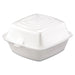 Foam Hinged Lid Containers, 5.38 x 5.5 x 2.88, White, 500/Carton. Insulated to accommodate both hot and cold foods. Non-absorbent. Stackable. Food Container Type: Hinged Take-Out Container; Material(s): Foam; Color(s): White; Width: 5.38".