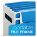 Desktop File With Hanging Folders, Letter Size, 6" Long, Granite. Fits on desktop or in file drawer. Holds letter size files up to 6" capacity. Portable file has hand holes for carrying. Includes five color Pendaflex® hanging folders, tabs and blank inserts. Durable plastic construction. Hanging File Folder Rack Type: Plastic; For File Size: Letter; Capacity (text): 6"; Depth: 6".