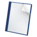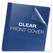 Premium Paper Clear Front Cover, 3 Fasteners, Letter, Blue, 25/Box. Full view of title page clearly grabs attention. Pacific-grade coated stock with embossed grain keeps reports looking good. Front Cover Color(s): Clear; Color Family: Clear; Back Cover Color(s): Blue; Sheet Size: 8.5 x 11.