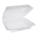 SmartLock Foam Hinged Lid Containers, White, 9 x 9.5 x 3.25, 1-Compartment, 150/Carton. Durable foam construction makes hinged lid containers a perfect lunchtime or dinnertime choice. Containers are insulated to maintain food temperatures at their tastiest. Excellent for use with both hot and cold foods. SmartLock® closure keeps food secure. Hinged lid foam containers provide a safe and durable option for taking food on the go. Large. Food Container Type: Takeout Clamshell, Foam; Material(s): Polystyrene; Color(s): White; Width: 9".