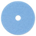 Hi-Performance Burnish Pad 3050, 21" Diameter, Sky Blue, 5/Carton. This is a floor maintenance buffing pad designed for softer floor finishes where frequent burnishing is required. Pad is long-lasting and produces less dust while minimizing point build-up, burning and swirl marks. Made of polyester fiber in a non-woven web construction. The fibers are bonded to the web structure with a durable resin system that permeates the entire pad. Unique design and durable construction make these pads the industry standard for consistent performance and long life. For ultra-high-speed machines: 1,500 rpm and higher. Application: Burnishing; Diameter: 21"; Width: 21"; Color(s): Sky Blue.