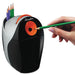 - Carbon steel blades and powerful AC motor work quickly and quietly to sharpen each pencil to a perfect point.