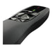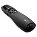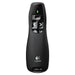 R400 Wireless Presentation Remote with Laser Pointer, 50 ft. Range, Matte Black. Wireless presenter R400 is designed to help you make your point. Its intuitive slideshow controls help you navigate through your presentation with confidence. Buttons are easy to find by touch. And its shape feels great in your hand. It’s got a red laser pointer that’s easy to see against most backgrounds and a range of up to 50 feet, so you’ve got the freedom to move around the room and mingle with your audience. A storable plug-and-play wireless receiver makes it simple to get started—there’s no software to install. And when you’re through, the receiver stores inside the presenter to make packing up easy. Projection Distance: 50 ft; Operating System Compatibility: Windows® XP, Vista™, 7, 8; Class Type: 2; Presenter Type: Remote with Laser Pointer.