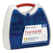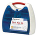 ReadyCare First Aid Kit for 50 People, ANSI A+, 238 Pieces. Convenient kit comes in an innovative plastic case with a carrying handle. Comes complete with all of the items needed to clean, treat and protect against a variety of everyday occurrences. Transparent door allows you to find items quickly in an emergency. Kit is conveniently wall mountable. For Up to 50 People—238 pieces. System Capacity: 50 Person System; Number of Pieces: 238; Contains: (100) Plastic Bandages, 1" x 3", (1) First Aid Tape, ½" x 5 yd, (12) Triple Antibiotic Ointment Packets, (15) BZK Antiseptic Towelettes, (1) CPR Mask with One Way Valve, (1) Burn Dressing, 4" x 4", (12) First Aid/Burn Cream Packets, 0.9 g, (1) Cold Compress, (4) Eye Pads and Adhesive Strips, (1) Eyewash, 1 oz, (10) Hand Sanitizer Packets, 0.9 g, (4) Nitrile Exam Gloves, (2) Conforming Gauze Roll, 2", (1) Scissors, (6) Gauze Dressing Pads, 3" x 3", (2) Trauma Pads, 5" x 9", (1) Triangular Sling/Bandage, 40" x 40" x 56", (1) Sterile Gauze Bandage, 4 "x 4 yd, (1) First Aid Guide, (10) Fingertip Fabric Bandages, (10) Knuckle Fabric Bandages, (3) Insect Sting Relief Wipes, (1) Tweezers, (20) Alcohol Cleansing Wipes, (4) Povidone-Iodine Wipes, (1) Elastic Bandage, 2" x 5 yd, (4) Antacid Tablets, (4) Aspirin Tablets, (2) Allergy Tablets, (5) Disposable Thermometer; Mounting: Wall Mountable.