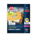 Waterproof Address Labels with TrueBlock and Sure Feed, Laser Printers, 1 x 2.63, White, 30/Sheet, 50 Sheets/Pack. Don't let a little rain or snow worry you when you need to send a package. Waterproof labels stand up to the toughest environmental conditions and extreme temperatures, while resisting scuffs, tears and smudges, so they remain easy to read. Ultrahold® Adhesive sticks to more tough surfaces: metal, plastic, glass and more, ensuring your label doesn't fall off your package. They also resist. TrueBlock® Technology completely covers everything underneath your label, so you can reuse boxes, mailing tubes and more. With free printable templates and designs from Avery® Design & Print, you can create custom labels with sharp text and graphics in minutes. Waterproof and UV-resistant. 8.5" x 11" sheets for laser printers. Address Labels with Sure Feed™—Designed for a reliable printer feed. Shape: Rectangular; Label Size - text: 1 x 2.63; Label Color(s): White; Color Family: White.