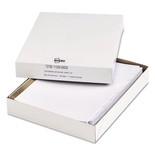 Economical white dividers for a variety of binder organization needs. Easy to customize self-adhesive labels right from your printer. Gold reinforc...