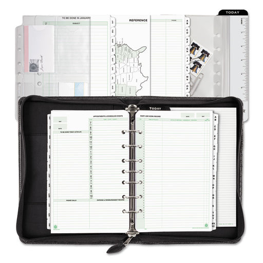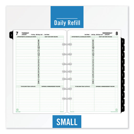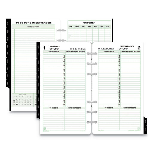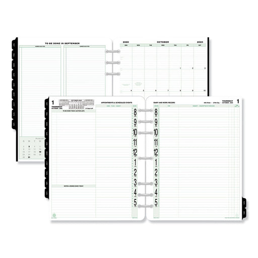 Concise, space-saving, single-page format. One day per page, including weekends; tabbed monthly overviews. Space for Appointments and Scheduled Eve...