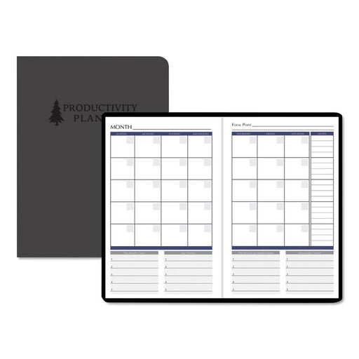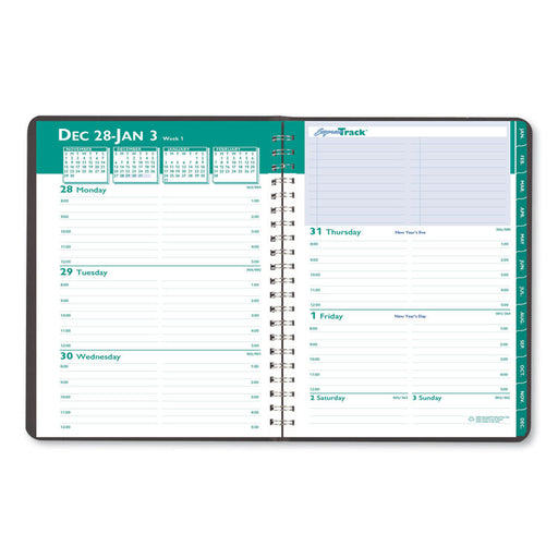 Durable hard cover with twin wire binding. Action item list and phone log on each page spread, appointment schedule in 30-minute intervals and line...