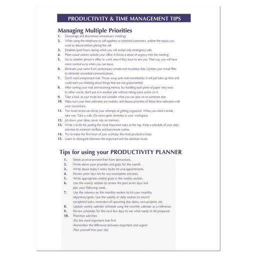 Heavy-duty, textured poly cover. Ruled daily blocks for precise notations plus countdown of days passed and days to come. Includes 12 ruled notes p...