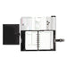 Soft Flex Leatherlike Starter Set, 8 1/2 x 5 1/2, Black. Smooth, leatherlike cover is flexible and bendable to fit in crowded bags. Interior organization includes credit/business card holders, I.D. window, zippered storage pocket and two pen loops. Magnetic snap-tab closure is secure and stylish. Includes three months of undated popular planning pages in one page per day, two pages per day and two pages per week formats. 12 undated tabbed monthly dividers for long-range planning. Size: 8 1/2 x 5 1/2; Page Color/Theme: White; Appointment Ruling: Open Scheduling; Calendar Term: 12-Month (Jan.-Dec.).