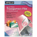 Quick-Dry Color Inkjet Transparency Film with Handling Strip, 8.5 x 11, 50/Box. Create stunning overhead projection presentation materials with Apollo® Transparency Film. Exceptional-quality, clear film provides superior marking adhesion. Quick-Dry Color Inkjet Printer Transparency Film with Removable Handling Strip—Specially coated
