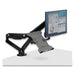 Laptop Arm Accessory, Black, Supports 15 lb. Provides adjustability to lift laptop up, or use a monitor and laptop on a dual monitor arm. Supports laptops up to 15 lbs.. Provides effortless laptop adjustment. Attaches to VESA plate. To be used in conjunction with gas spring arms. Wall/Ceiling Mounts & Hardware Type: Monitor Arm; Mounting: Attaches to VESA Plate; Depth: 16.2"; Width: 1.2".
