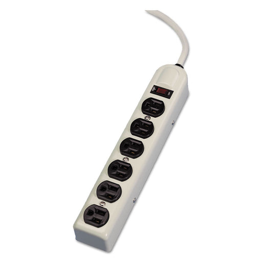 Metal power strip with six outlets for heavy-duty applications. Three-prong grounded plug and outlets. On/Off switch with 15-amp circuit breaker. P...