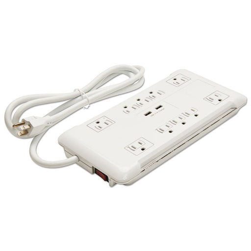 Eight-outlet surge protector is engineered to protect computers, printers and fax/modem equipment. EMI/RFI noise filtering, catastrophic fuse, illu...