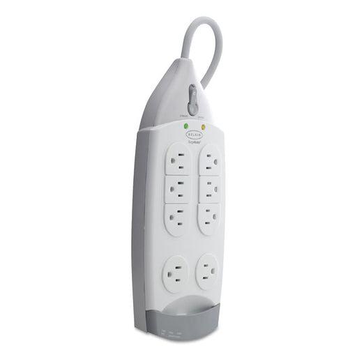 Compact eight-outlet design brings powerful surge protection to small spaces. EMI/RFI noise filtering, catastrophic fuse, illuminated on/off switch...