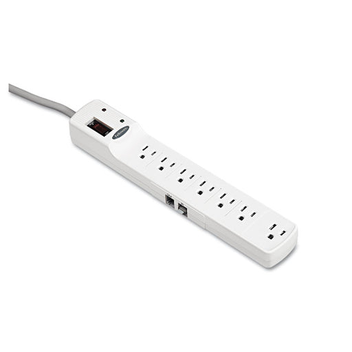 Seven-outlet surge protector plus auxiliary phone and DSL protection. EMI/RFI noise filtering, catastrophic fuse, illuminated on/off switch and 15-...