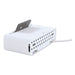 Cable Management Power Hub and Stand with USB Charging Ports, 5 Outlets, 3 USB, 6.5 ft Cord, 11.75 x 6.6 x 3.5, White. Integrated power strip with spacious internal compartment to organize power cords to reduces clutter and dangling wires. Connect and control up to five devices individually: computer, printer, phone, tablet, monitor, speakers, small home appliances, etc. Elegant compact design; sturdy construction for use as a monitor stand and/or tablet and phone stand. Three USB charging ports (Output 5V, 3.1A). Includes 30 preprinted and blank labels for use to identify each individual switch, as well as master power switch. Power Capacity: 1080J; Number of Telephone Jacks: 0; Cord Length: 6.5 ft; Number of Outlets: 5.