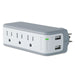 Wall Mount Surge Protector, 3 Outlets/2 USB Ports, 918 Joules, Gray/White. Ideal for business travelers, this convenient wall-mount surge protector features a 360° rotating plug with four locking positions. Combination of AC outlets and USB ports provides complete surge protection for all connected equipment. Compact, efficient design fits easily into a computer bag. Includes mini-USB cable to charge virtually any USB device. Number of Outlets: 3; 2 USB; Joules Of Surge Protection: 918 J; Protection Type: Power; Noise Protection: Up to 40 dB EMI/RFI Noise Filtration.