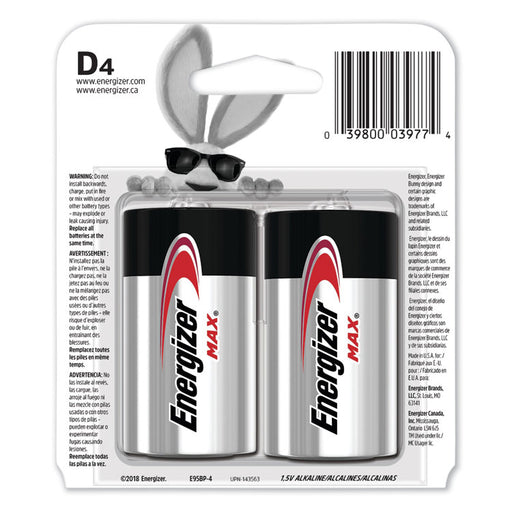 MAX Alkaline D Batteries, 1.5 V, 4/Pack