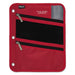 Zipper Pouch, 8 3/4 x 11, Red. Features three zipper pockets to keep supplies secure. Two pockets for small items have diagonal zippers for easy access. One large zipper pocket has a vertical zipper and is specifically designed to hold bigger items. Durable puncture-resistant, micro-mesh allows quick view of contents. Pouch has three holes and is designed for storage in a three-ring binders. Color(s): Red; Height: 11"; Width: 8 3/4".