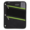 - Pouch has three holes and is designed for storage in a three-ring binders.