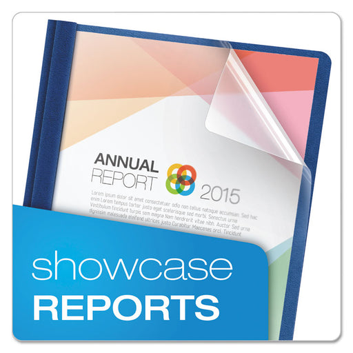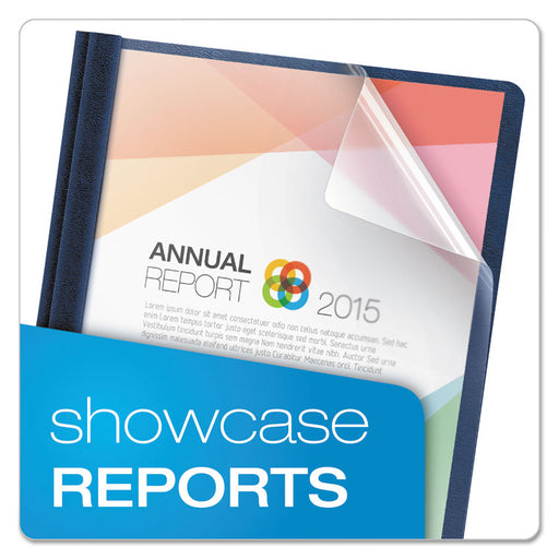Extra large capacity for meaty reports! Embossed panel for perfect placement of title. Front Cover Color(s): Dark Blue; Color Family: Blue; Back Co...