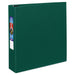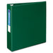 Heavy-Duty Non-View Binder with DuraHinge and One Touch EZD Rings, 3 Rings, 2" Capacity, 11 x 8.5, Green. Heavy-duty binders for extended use. Tear-resistant DuraHinge® design is stronger and lasts longer. DuraEdge feature makes the sides and top more pliable, providing greater split resistance. Deep texture film offers a smoother finish and features a linen pattern for a high-quality look and feel. Four clear, interior pockets provide extra storage space. Wider front and back panels fully cover standard dividers and sheet protectors. One Touch slant rings open with ease, keep pages secure and have a higher page capacity compared to the same size round rings. Pages lie flat with back-mounted rings for a clean spine. Binders are made out of heavy-duty, non-stick poly material and won’t lift ink or toner off printed pages. Binder Type: Ring; Binder Style: Non-View; Binder Size Capacity: 2"; Binder Sheet Capacity: 540.