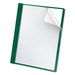 Premium Paper Clear Front Cover, 3 Fasteners, Letter, Green, 25/Box. Full view of title page clearly grabs attention. Pacific-grade coated stock with embossed grain keeps reports looking good. Front Cover Color(s): Clear; Color Family: Clear; Back Cover Color(s): Green; Sheet Size: 8.5 x 11.