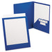ViewFolio Plus Polypropylene Portfolio, 50-Sheet Capacity, Blue/Clear. Conveniently keep printed documents with a CD and notes. ViewFolio™ front-cover insert gives your title page a custom framed look. Folder's interior features stylish wing-cut pockets with die-cut holders. Inside front pocket die-cut holds a business card; inside back cover die-cuts hold a CD and notes. Durable poly construction is wear-, tear- and moisture-resistant. Each folder holds up to 100 sheets (50 sheets per pocket). Front Cover Color(s): Clear; Color Family: Clear; Back Cover Color(s): Blue; Sheet Size: 11 x 8 1/2.