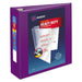 Heavy-Duty View Binder with DuraHinge and Locking One Touch EZD Rings, 3 Rings, 3" Capacity, 11 x 8.5, Purple. Heavy-Duty view binder with one touch EZD® rings is perfect for long-term, regular use. Tear-resistant DuraHinge® design is stronger and lasts longer. DuraEdge® feature makes the sides and top more pliable, providing greater split resistance. Deep-textured film offers a smoother finish and features a linen pattern for a high-quality look and feel. Clear cover and spine for easy customization. Four clear, interior pockets provide extra storage space. Wider front and back panels fully cover standard dividers and sheet protectors. One touch EZD® rings provide easy access and have a higher page capacity when compared to the same size round rings. Customize the cover with free, easy-to-use templates and designs at Avery® Design & Print online. Locking Rings—Keep pages secure. Binder Type: Ring; Binder Style: View; Binder Size Capacity: 3"; Binder Sheet Capacity: 670.