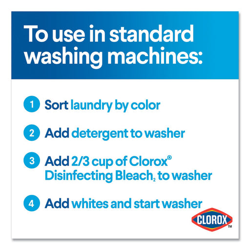 Clorox Disinfecting Bleach with CloroMax kills 99.9% of household germs and bacteria. Cleans, disinfects, deodorizes, whitens and removes stains. C...