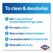 Bleach with CloroMax Technology, Clean Linen Scent, 64 oz Bottle, 8/Carton. Clorox Scented Bleach with Clean Linen fragrance keeps clothes whiter longer than detergent alone, cleans and protects surfaces, and provides a long-lasting fresh scent. Clorox Scented Bleach is filtered three times to deliver the purest bleach, removes 70% more stains (than detergent alone), and has 10X deep cleaning benefit. Use Clorox Scented Bleach with confidence to remove laundry stains like grass, juice, dirt and blood from white clothing, as well as, clean and deodorize household surfaces such as countertops, floors, sinks, and trash cans. This bleach can be used in standard and high efficiency washing machines and is great for everyday cleaning and seasonal cleaning needs including spring cleaning and back-to-school season. Clorox Bleach with CloroMax Technology whitens, brightens and deodorizes to keep your laundry and home smelling fresh. Application: Bleach; Applicable Material: Ceramics; Cement/Concrete; Enamel; Fabric; Glass; Laminate; Metal; Plastic; Chemical Compound: Sodium Hypochlorite; Sodium Hydroxide; Dirt Types: Bacteria; Fungus; Germs; Grease; Mildew; Organic Matter; Soil; Stains.