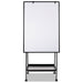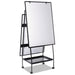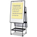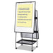 Creation Station Dry Erase Board, 29 1/2 x 74 7/8, Black Frame. Fully mobile and adjustable double sided easel is versatile enough for any situation. Having adjustable height, this product is usable by any age group. Contains four 2" easy glide casters for enhanced mobility which are lockable when not in use. Melamine Surface. Board Type: Dry Erase; Board Width: 29.5"; Board Height: 74.88"; Surface Material: Melamine.
