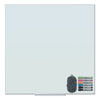 Floating Glass Dry Erase Board, 72 x 48, White. White frosted dry erase calendar board is a perfect and functional solution for the frequent and heavy usage areas of your office, school classroom, home or any commercial space. Clean, contemporary and frameless product design lines will add a touch of subtle style to your wall. The modern frameless feature enables you to hang multiple glass boards adjacent to each other and expand the writing surface to fit your custom space needs. The board's premium ultimate glass writing surface will never stain or ghost. All ink erases easily with a simple eraser and the glass surface continuously outperforms all traditional melamine or painted steel dry erase writing surfaces. Occasionally, use any dry erase board spray or wet dry erase board wipes after continuous use to clean the writing surface. Although all dry erase and glass markers work well with this board, the U Brands dry erase markers provide the ultimate writing and eras-ability experience. For safety, the board is made from tempered glass as well. Includes hidden mounting brackets that give the impression that the board is floating on the wall. All wall hanging hardware is hidden under the mounting bolts for a sleek and modern appearance. Packaged with extra supportive corrugate material that is highly resistant to damage during shipping; all corrugated material can be recycled once unpacked. Board Type: Glass Dry-Erase Board; Board Width: 72"; Board Height: 48"; Board Depth: 1".
