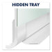 - Frameless design features rounded corners and includes a hidden tray to store markers, erasers, and accessories.