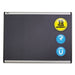 Ultra-durable, magnetic fabric bulletin board surface is backed by high-density fiberboard for better document security.