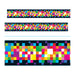 Bolder Borders, 2.75" x 35.75 ft, Pixels, Assorted Colors. Straight-edged borders are a neat and easy way to extend display themes or frame student work. Designs coordinate with new and existing TREND® Bulletin Board Sets. Pre-cut, durable and reusable. Color(s): Assorted; Theme: Pixels; Design: Pixels; Height: 2 3/4".