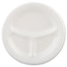 Laminated Foam Dinnerware, Plate, 3-Comp, 10 1/4", White, 125/Pk, 4 Pks/CtnClassic elegance.