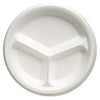 Foam Dinnerware, Plate, 3-Comp, 8 7/8" dia, White, 125/Pack, 4 Packs/CartonAn economical choice for commissary, food court and general food applications.