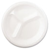 Foam Dinnerware, Plate, 3-Comp, 10 1/4" dia, White, 125/Pack, 4 Packs/CartonAn economical choice for commissary, food court and general food applications.