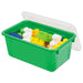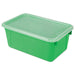 Cubby Bins, 12.25 x 7.75 x 5.13, Green, 6/PK. These small bins fit perfectly in classroom cubbies. They are also useful boxes for organizing your classroom. They are made of a drop-resistant plastic that prevents cracking. The clear lid is included. Perfect bin for shoes or even general storage. Boxes & Bins Type: Covered; Material(s): Plastic; Color(s): Green; Number of Compartments: 1.