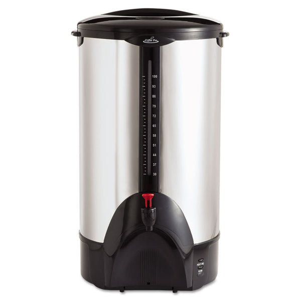 Features locking safety lid, carry handles and dripless safety spigot. Includes double wall insulation, cup tray and volume sight glass. Grounded c...