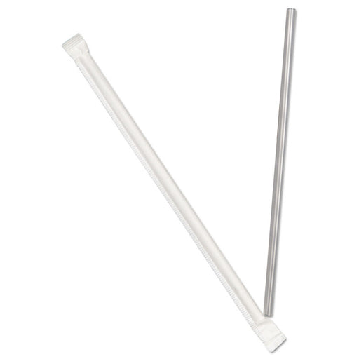 Plastic straws are individually wrapped to be safe and sanitary. Material(s): Plastic; Color(s): Translucent; Size: 7 3/4".