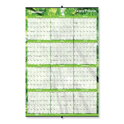 Large laminated wall-calendar featuring full year spread in horizontal and/or vertical format, includes erasable marker and metal support with eyel...