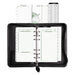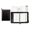 Recycled Bonded Leather Starter Set, 6 3/4 x 3 3/4, White. Features high-quality bonded leather from recycled leather fibers for a polished, professional look. Large external storage pocket and various inside pockets offer additional storage. Includes three months of undated planning pages, 12 undated and tabbed monthly dividers, tabbed telephone/address pages and assorted reference pages. Zippered closure with pull-tab ensures everything stays safe. Smooth Bonded Leather—Smooth and understated. Size: 6.75 x 3.75; Page Color/Theme: White; Appointment Ruling: Open Scheduling; Page Format: One Day per Two-Page Spread; One Month per Two-Page Spread; One Week per Two-Page Spread.