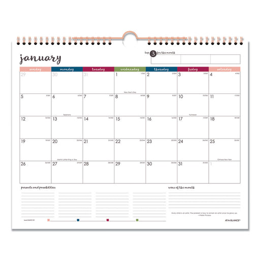This season, choose to organize your schedule and focus your priorities with a WorkStyle wall calendar. Gray printing and a light pink or mint desi...