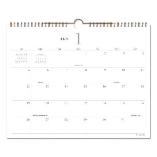 The AT-A-GLANCE Signature Collection Monthly Wall Calendar features a clean, modern design with gray and red print on each page and brass accents f...