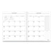 • One month per two-page spread with unruled blocks; past and future months reference.