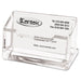 Acrylic Business Card Holder, Capacity 80 Cards, Clear. Angled, transparent design offers easy access to cards. Heavy-cast polished acrylic for durability and a sleek, contemporary look. Manufacturer's one-year limited warranty. Card Holder Type: Business Card Holder; Card Capacity: 80; For Card Size: Business Card; Color(s): Clear.